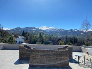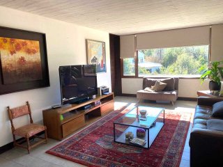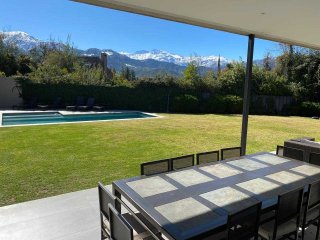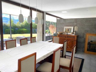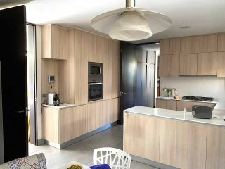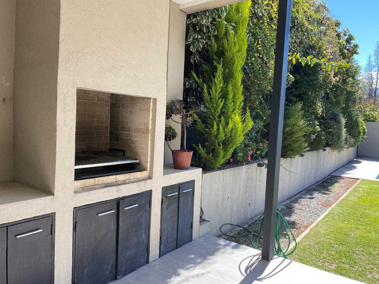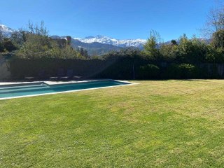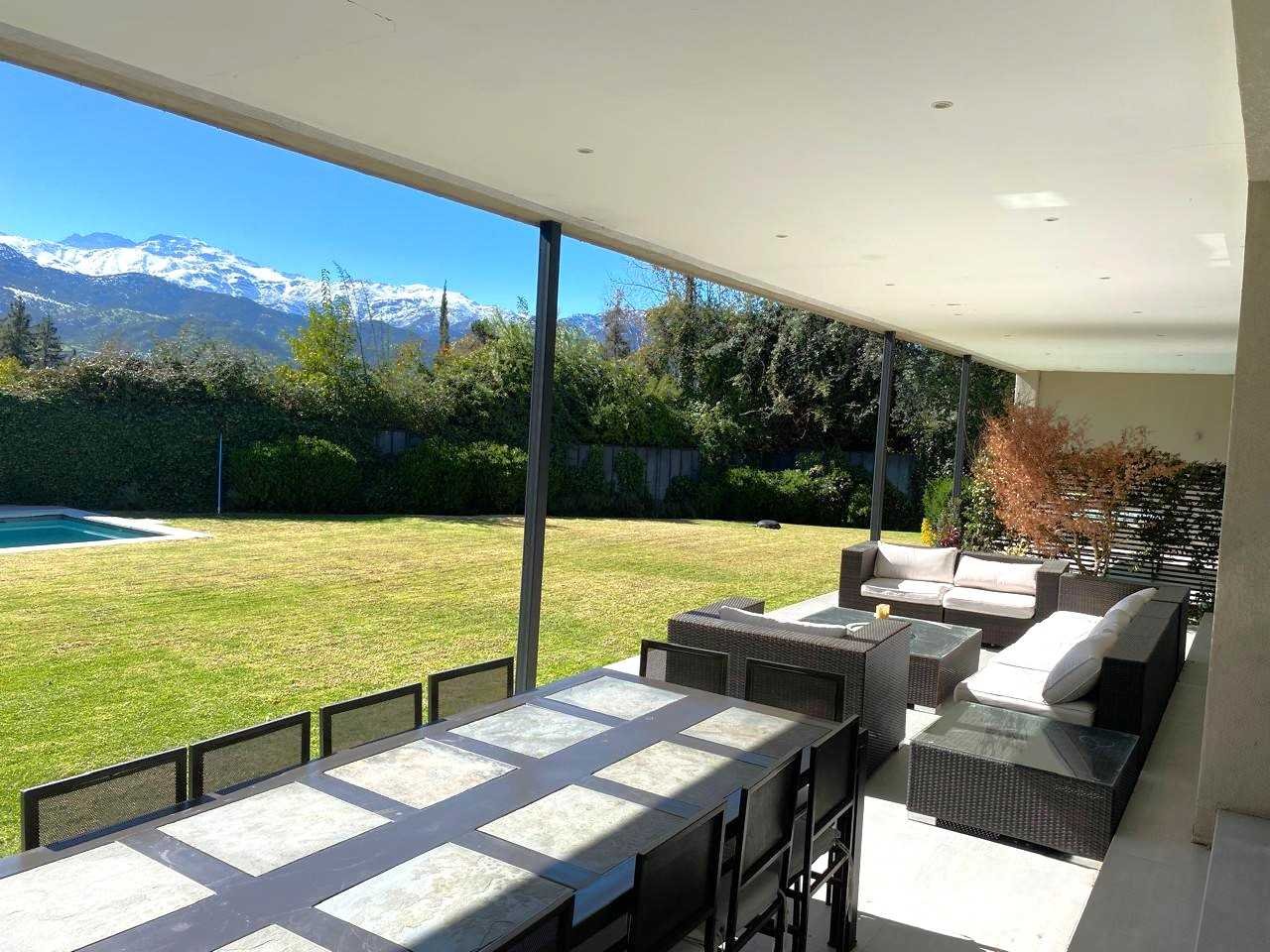 Casa Mediterránea en Condominio Exclusivo — Lomas de La Dehesa Espectacular casa mediterránea ubicada en uno de los sectores más exclusivos de Lo Barnechea, dentro del condominio Lomas de La Dehesa, donde se encuentra el Club de Golf. Una propiedad ideal para disfrutar en familia, con amplios espacios, luminosidad natural, lindas vistas y la tranquilidad de no tener ruidos de avenidas principales. A pasos del colegio Santiago College y cerca del Everest y Monte Tabor. Distribución Primer nivel Elegante hall de acceso que da paso a un living y comedor separados, ambos con amplios ventanales termopanel que entregan gran luminosidad y conectan con una amplia terraza equipada con parrilla empotrada, jardín formado y piscina: un espacio perfecto para disfrutar con familia y amigos. Cocina moderna con comedor de diario, logia cerrada, servicios completos y baño de visitas. Además, cuenta con una sala de estar o dormitorio adicional y un baño completo, ideal para visitas o un home office. Calefacción central por radiadores. Segundo nivel Al subir, se accede a una acogedora sala de estar familiar. En este piso se encuentran: Dormitorio y baño completo. Dormitorio en suite. Dormitorio principal con espectacular vista, amplio walking closet y baño con hidromasaje y ducha separados. Además, escritorio o pieza de niños con medio baño, conectado al dormitorio principal. Calefacción central por radiadores. Tercer nivel Gran terraza panorámica al aire libre, con maravillosas vistas al entorno y los cerros de La Dehesa. Un espacio único para disfrutar de atardeceres y reuniones al aire libre. Resumen Estilo: Mediterráneo Ubicación: Lomas de La Dehesa, Lo Barnechea Dormitorios: 4 + servicio Baños: 4.5 Sala de estar + escritorio Terraza y jardín con piscina Calefacción central por radiadores Condominio con seguridad y entorno natural